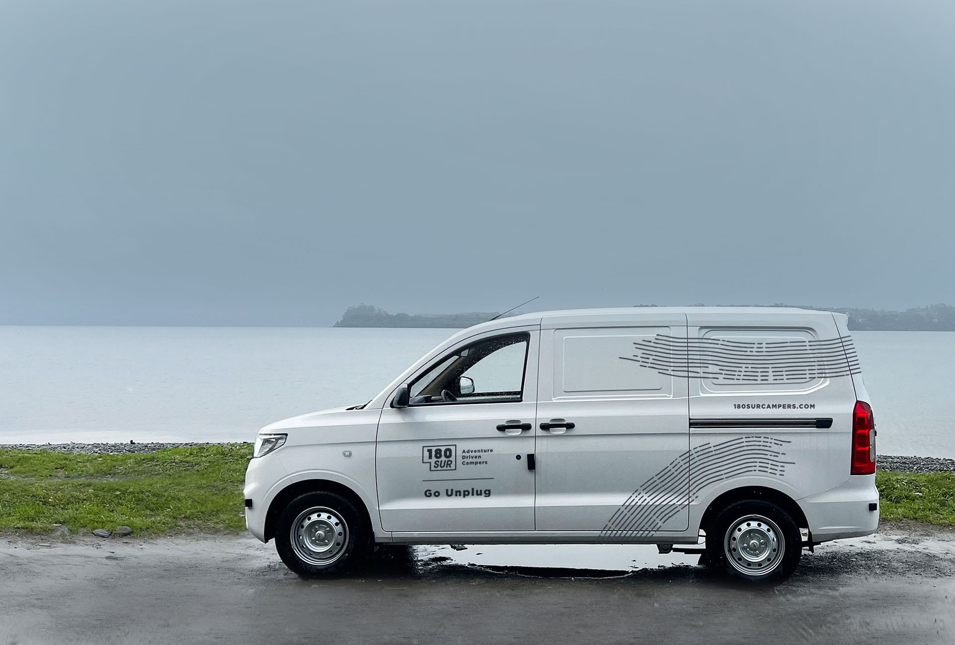180 Lite is our simplest camper line. But don’t worry — it comes equipped with all the essentials. Designed to give you the full Patagonian experience, this unit features a double bed, indoor dining area, full kitchen (fridge, gas stove, and sink), fresh water tank, solar panel with independent battery, and camping table and chairs.